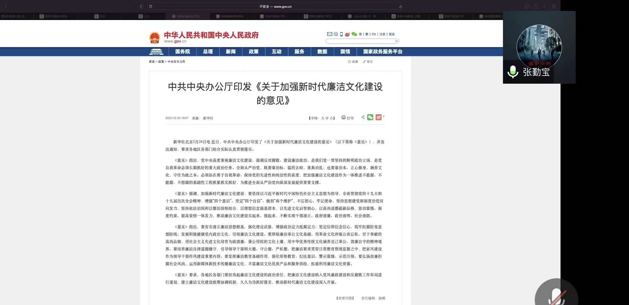 党员教师张勤宝领学了中共中央印发《关于加强新时代廉洁文化建设的意见》文件精神,并分享了心得体会,他谈到,作为党员教师,要将“家风”和“学风”结合起来,综合运用多媒体形式开展对师生的警示教育,建设良好的廉洁生态,在课堂教学中传递廉洁“正能量”。