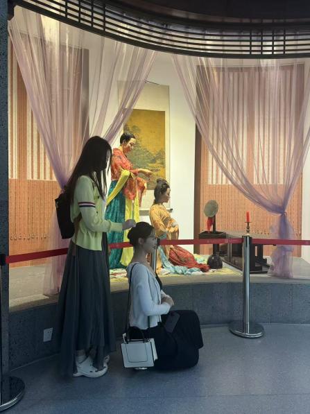 专业讲解参观环节成为党性教育与专业融合的生动课堂。在妇女教育馆,戏剧与影视专业学生马凌骏、范婉婷结合馆藏近代女子教育课本、校徽等珍贵史料,通过情景模拟与微表情解析,重现了百年前女学生追求知识、争取平等的历史场景。讲解员特别指出:“妇女教育的发展历程,是党领导下教育公平不断推进的缩影,更是‘人民至上’理念在教育领域的生动实践。”