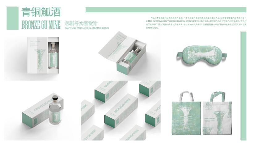 未到场党员通过党支部推送的“云课堂”资源包开展自主学习,内容包括线上文物导览、学术讲座视频回放,激励党员结合所学专业开展创作,引导党员感悟中华文明的深厚底蕴与艺术教育的初心使命。其中,入党积极分子黄宝凤以青铜觚为灵感创作系列文创作品。其作品以青铜觚繁复精美的纹饰与器形为基底,创新设计出以“礼”为主题的酒品包装及文创衍生品。黄宝凤在创作札记中写道:“青铜器虽褪去斑斓色彩,却在时光中沉淀出更厚重的故事。我们以现代设计语言重构历史纹样,让千年礼器在新时代焕发新生——这既是艺术传承,亦是文化自信的践行。”