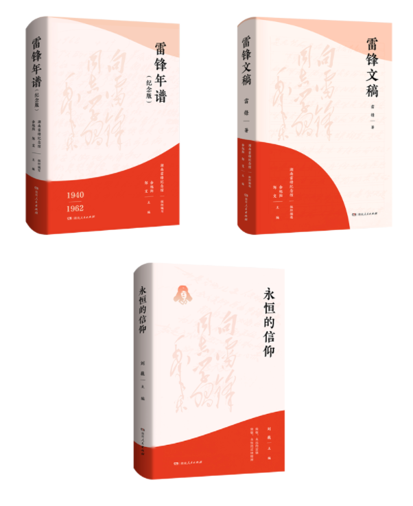 《雷锋书系》包含《雷锋年谱(纪念版)》《雷锋文稿》《永恒的信仰》三本著作,分别从雷锋生平经历、雷锋精神信仰和雷锋文字作品三方面,全方位、多层次、成体系地呈现雷锋平凡而伟大的一生,系统深入地阐释雷锋精神的内涵。
