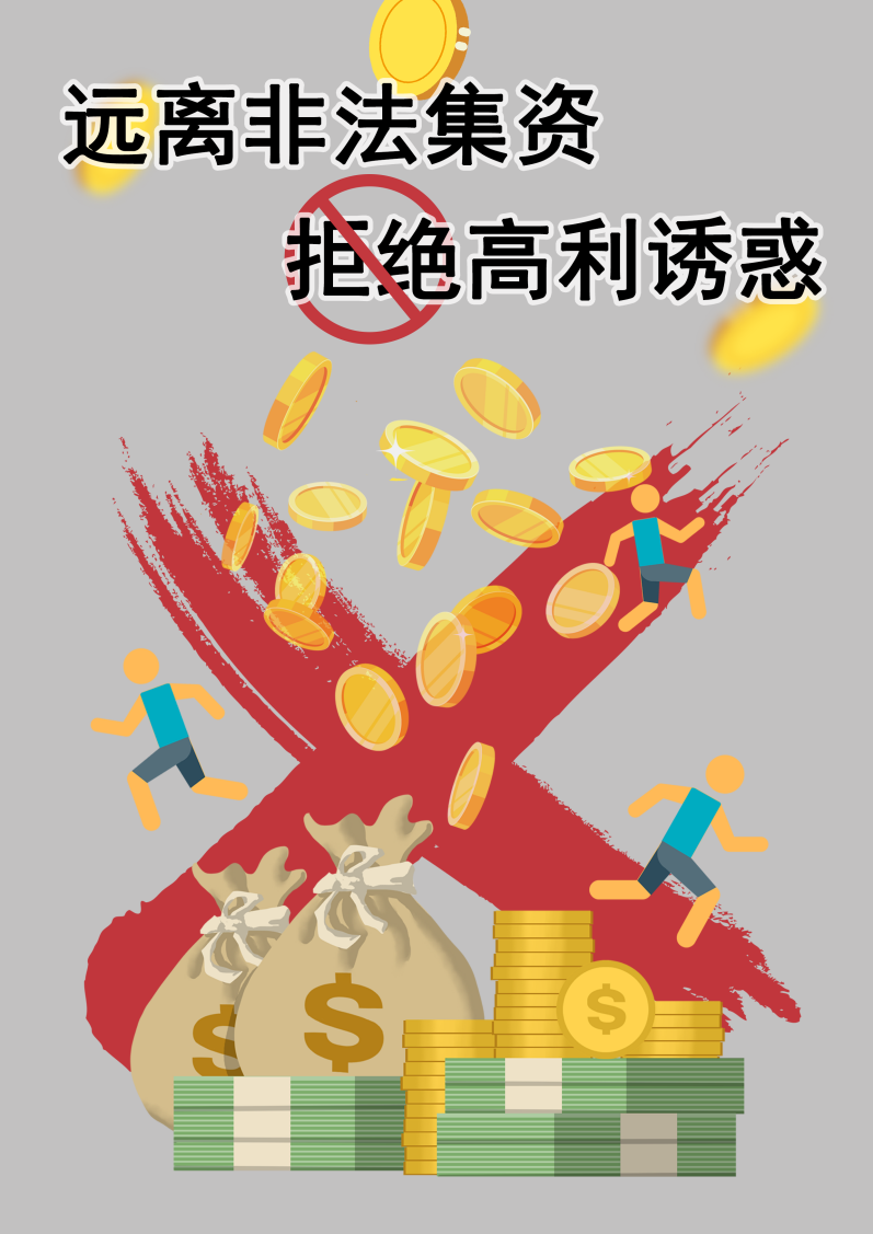 增强法律意识,认清非法集资本质。非法集资是违反国家金融管理法律规定,向社会公众(包括单位和个人)吸收资金的行为,具有非法性、公开性、利诱性、社会性等4个特征。参与非法集资,不受法律保护,风险自担、责任自负,政府不买单。同学们务必擦亮双眼,主动学习识别非法集资的知识,切勿相信竹篮子也可以打水的神话。
