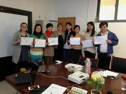 Irene 教授将“科学揭示事物本质,而艺术是本质的再现”这一理念进行了生动地诠释。她通过对意大利文艺复兴时期集艺术家、科学家、工程师为一身的达芬奇(Leonardo Da Vinci)名作《蒙娜丽莎》、《维特鲁威人》以及其他世界名画的讲解,阐述了作为先驱的达芬奇是如何将解剖学、植物学、光学、园林学、地质学、空气动力学和流体动力学等通过艺术的形式完美再现。Irene 教授认为,梵高(Vincent Willem van Gogh)、巴塞罗那建筑师安东尼奥•高迪(Antoni Gaudi i Cornet)等许多艺术大师都是通过科学找寻自然界的规律再以艺术形式予以呈现。Irene教授还在现场开展了互动式教学,如与教师们一同测试水果在水中的浮力以理解密度概念;通过实际测量各种圆的直径和周长以求得圆周率等。她所带来美式教育法启发了参与者学习的主动性和创造性。最后, Irene 教授给每位参与者颁发了由霍夫斯特拉大学授予的、她本人亲笔签名的结业证书。
