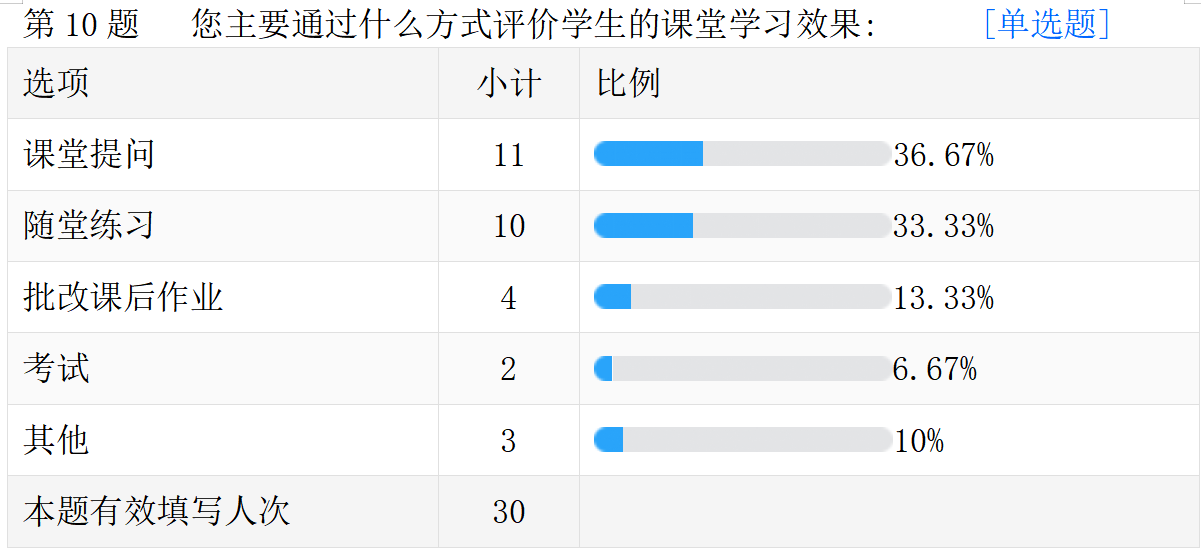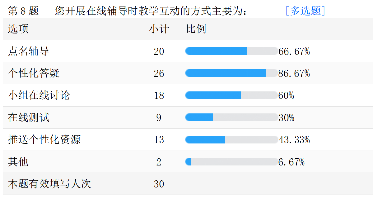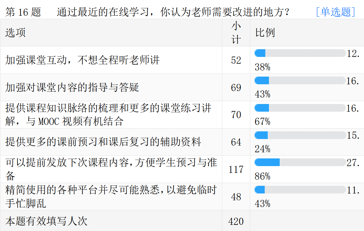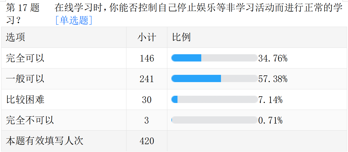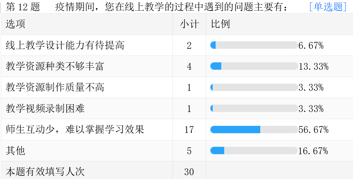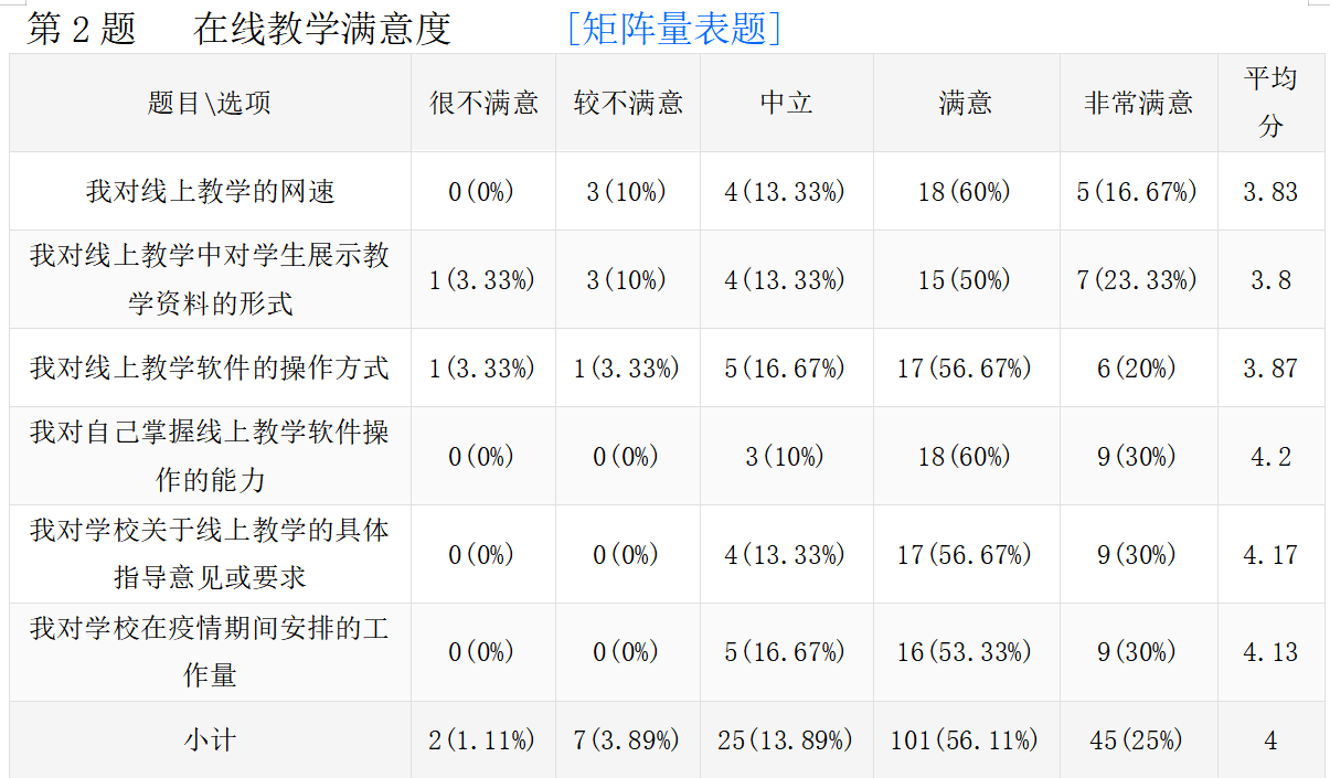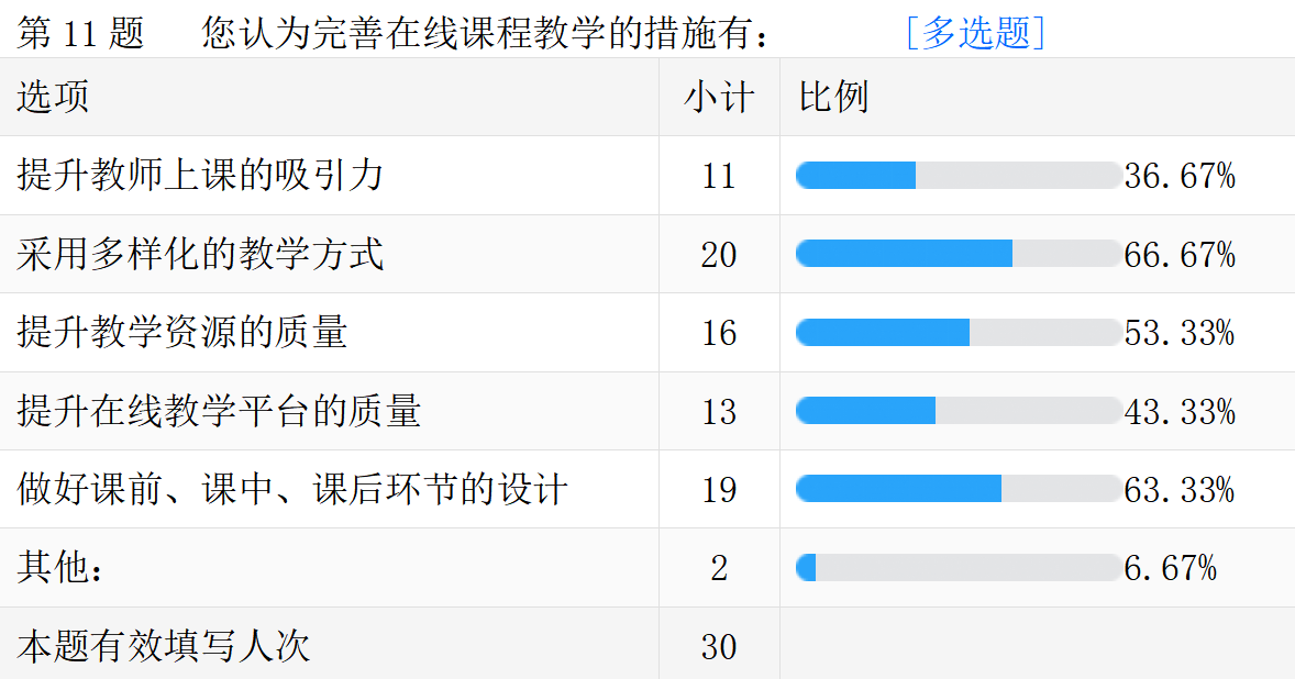 线上教学的真实情况。以下是调查问卷的部分数据汇总。