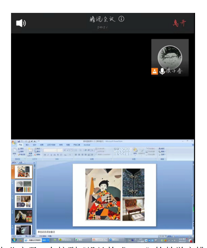 视觉传达设计专业侯小春:受突如其来的疫情影响,我上周刚刚完成了本学期大四的教学任务,紧接着这周又开始提前进入下学期大一的课程,此次线上教学与以往的线上教学有所不同,考虑到同学们的学习场地变成宿舍,课程的课堂和课后的练习会受影响,因此,我做了相对充分的教学准备。首先让班长给班级微信群发送了此次课程所用教材的电子书,让同学们提前预习,提前了解课程第一部分所学的基本内容并准备讨论问题。课堂上我采用腾讯会议的形式在第一时段通过共享屏幕给学生讲解此次课程教学目的,旨在让学生学习了解我国优秀的传统图案和民间图案,增强学生的文化自信,课程讲授过程中我鼓励大家参观本市及周边的博物馆,直观接受传统文化的熏染,同学们也很有热情纷纷留言表示疫情解封后会尽快去学习和感受。第二时段是通过共享屏幕给学生们分享国内知名设计师运用中华传统纹样设计的经典案例视频,在分析和讨论过程中学生们对课程的学习产生了更为浓厚的学习兴趣。