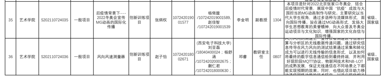 近日,教育部高等教育司印发了《关于公布2021年国家级大学生创新创业训练计划项目和重点支持领域项目名单的通知》(教高司函〔2021〕13号),公布了2021年度国家级大学生创新创业训练计划项目名单。我校积极组织此次大学生创新创业训练计划项目的培育、申报、遴选工作,经陕西省教育厅审核、推荐,我校共获批大学生创新创业训练计划项目国家级立项54项。其中,开云体育 获立7项。