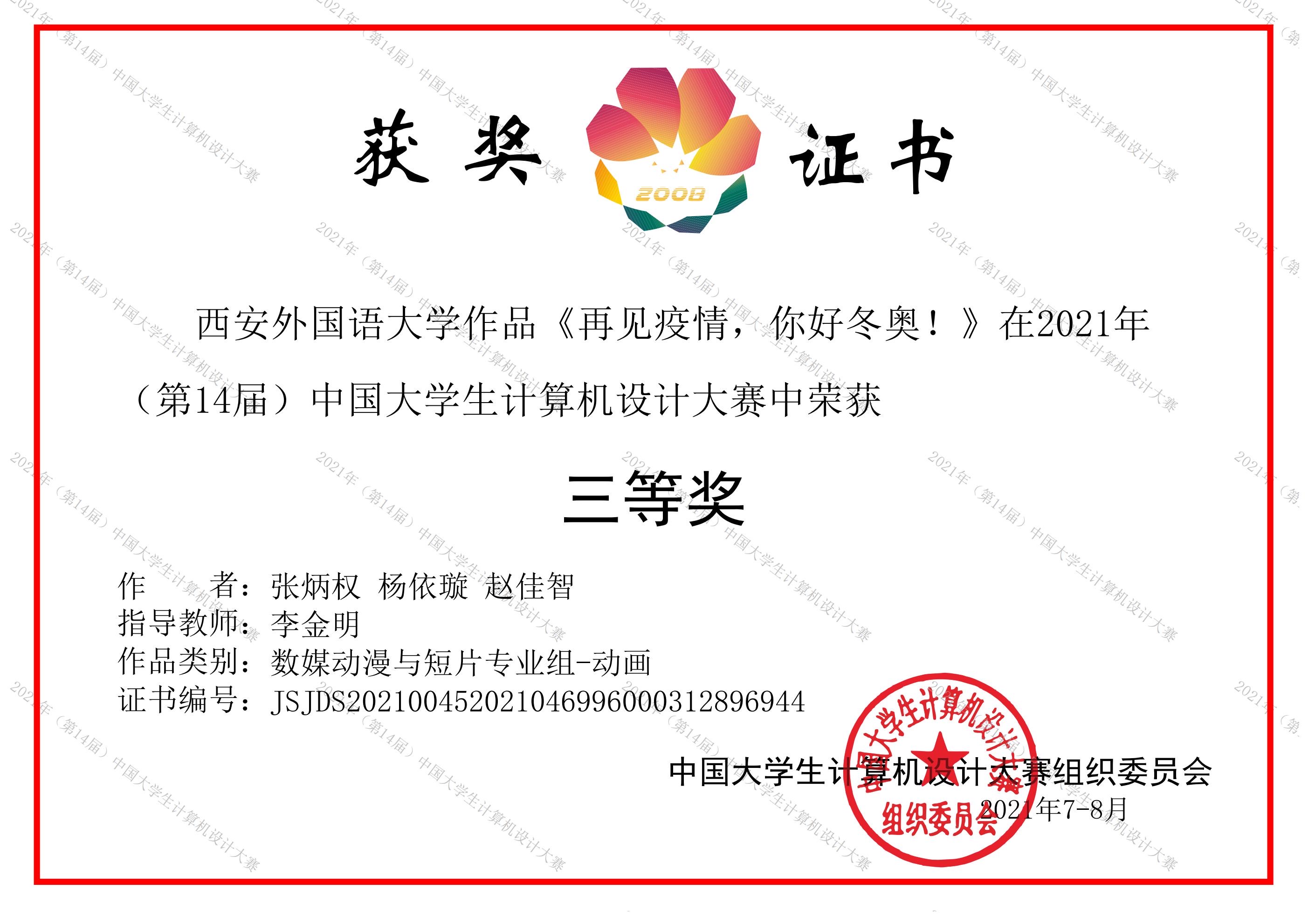 各位领导老师的大力支持,在王元方老师,李金明老师和韩佩晔老师的指导下,我校推荐的3个参赛团队获得中国大学生计算机设计大赛国赛的参赛资格。国赛举办时间在7-8月,三位指导老师利用暑假时间对进入国赛的团队作品进行赛前指导和答辩预演,学校的情景交互式声音设计虚拟仿真实验室为创作提供了技术支持。经过国赛组委会和承办方对进入国赛的作品层层筛选和评审,在最后的决赛答辩中,我校3个团队作品分别获得一项国赛一等奖,两项国赛三等奖。