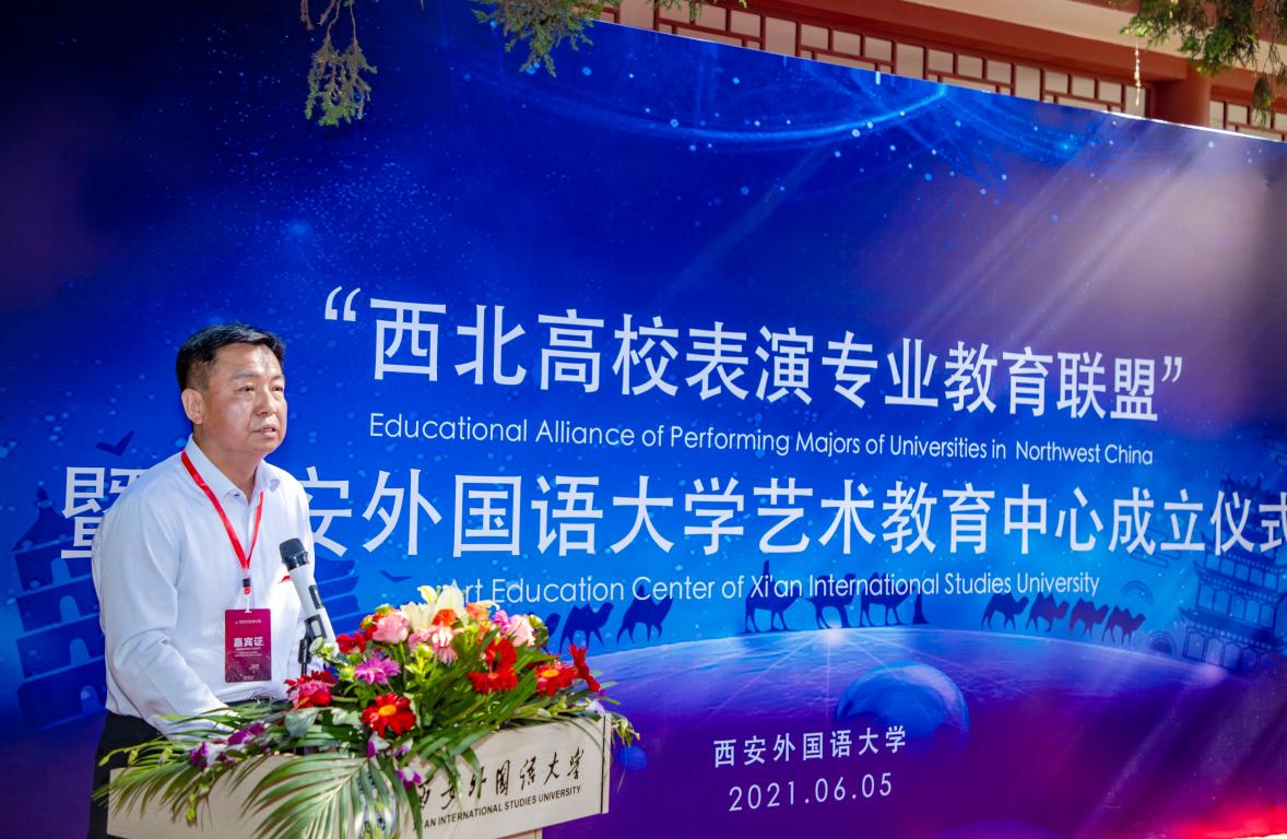 2021年6月5日,“西北高校表演专业教育联盟”暨西安外国语大学艺术教育中心成立仪式在雁塔校区中华文化体验中心顺利举行。中国文联终身成就电影艺术家、国家一级演员许还山,陕西省文联副主席、省戏剧家协会主席、国家一级演员刘远,教育部艺术教育委员会委员、中国高教影视研究会副会长彭吉象教授,美国好莱坞技术制作导演Nathan Evans,西安演艺集团、陕西光中影视公司、陕西旅游集团影视文化有限公司等行业嘉宾以及来自西北大学、陕西师范大学、西北政法大学、西安音乐学院、西安工程大学、长安大学、陕西科技大学、西安外事学院等十五所兄弟院校艺术专业带头人作为理事单位代表出席本次大会,共商西北表演教育的发展大计。