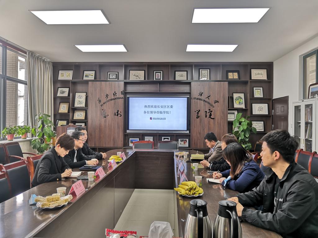座谈会上,长安区融媒体中心靖晓昶主任详介绍了长安区宣传部及融媒体中心发展建设情况,以及中心的下一步发展规划。他表示,区融媒体中心以积极热情的姿态向高校敞开合作之门,为高校专业建设、实习实践创造条件,欢迎西安外国语大学的学子在中心平台发挥才智与专业所长,施展才华。长安区区委宣传部常务副部长、区文明办主任赵晓薇对学院专业建设给予充分肯定,并从全区规划建设发展目标、长安文化建设以及十四运准备等多个方面寄予合作希望。她表示,此次座谈会是一个良好的开端,秉持区委“三走进”发展理念,政府与高校加强联系,密切沟通,共同创造发展机遇,促进区域发展建设。会上,李杰院长向来访嘉宾介绍了学院专业建设、实验室建设、专业研究与实践发展以及实践基地建设等方面的具体情况,从区域文化艺术研究到具体实践措施等提出了求真务实的方法。他表示,政府从高校合作中汲取创新驱动力,高校依托政府政策发挥智库作用推进社会建设的高质量发展。学院已为合作做好准备,也将从具体项目出发,将合作落到实处。