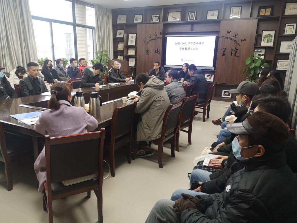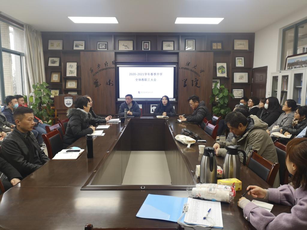 于2021年2月27日上午召开2020-2021学年春季学期首次全体教职工大会。党委书记梅林竹、副院长邹满星及全体在岗教工参会,院长李杰主持会议。