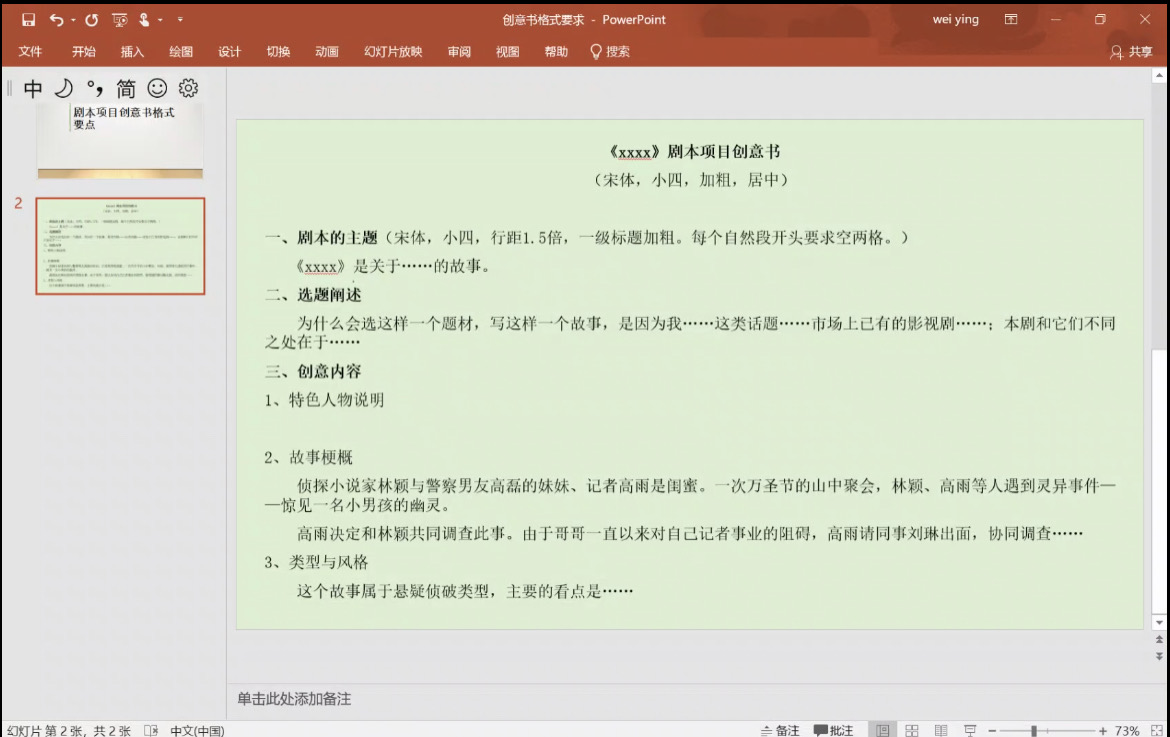 首先由魏英老师介绍了剧本项目创意书的写作要点和具体要求,帮助同学们把握剧本写作的基本框架。