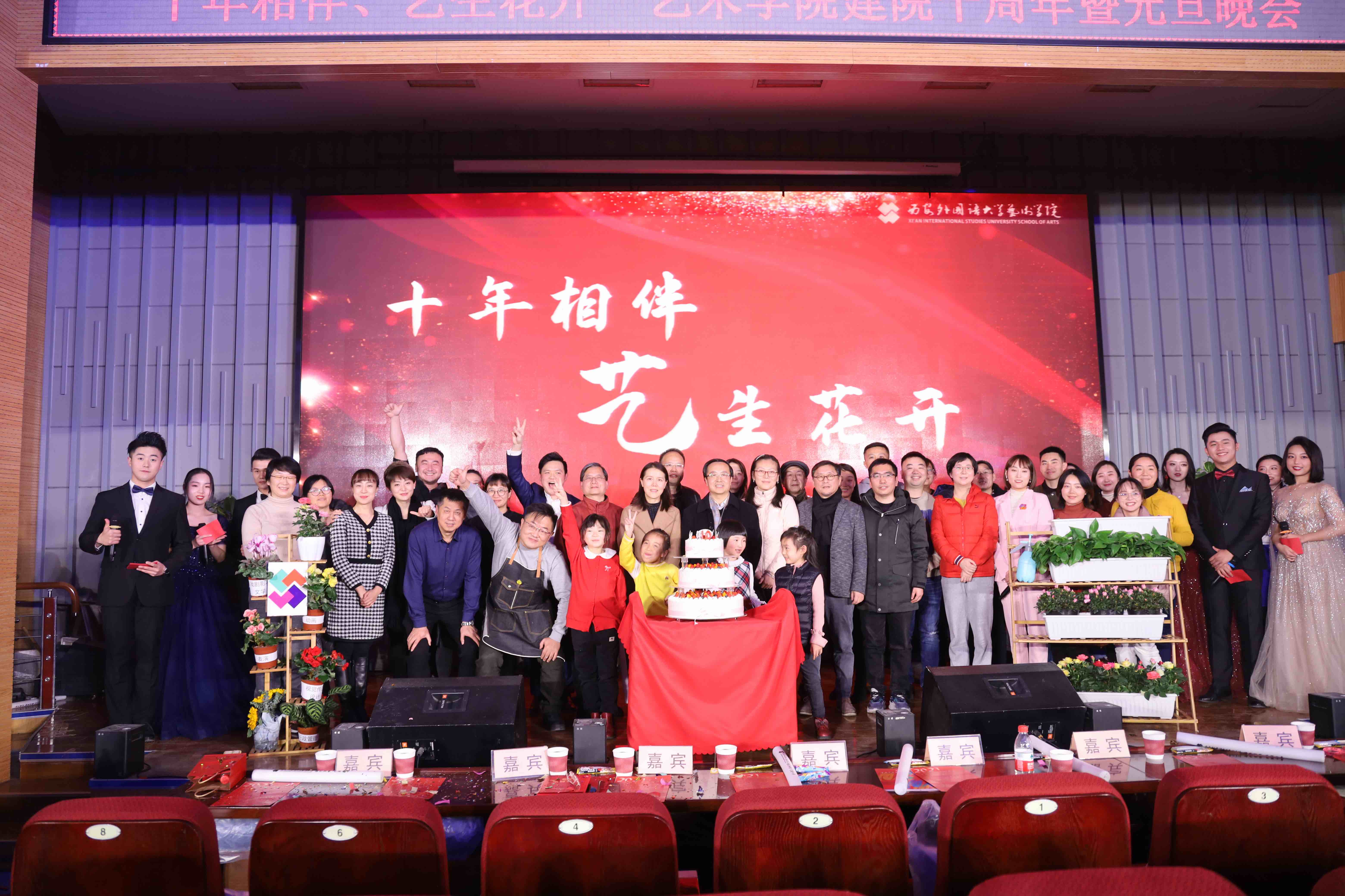 晚会在一曲由表演教研室陈乃嘉、同飞老师领唱的《相亲相爱一家人》歌声中圆满落幕。嘉宾、校友、学生代表与学院全体教师一同上台留念。十年今日,斐然成章,愿开云体育