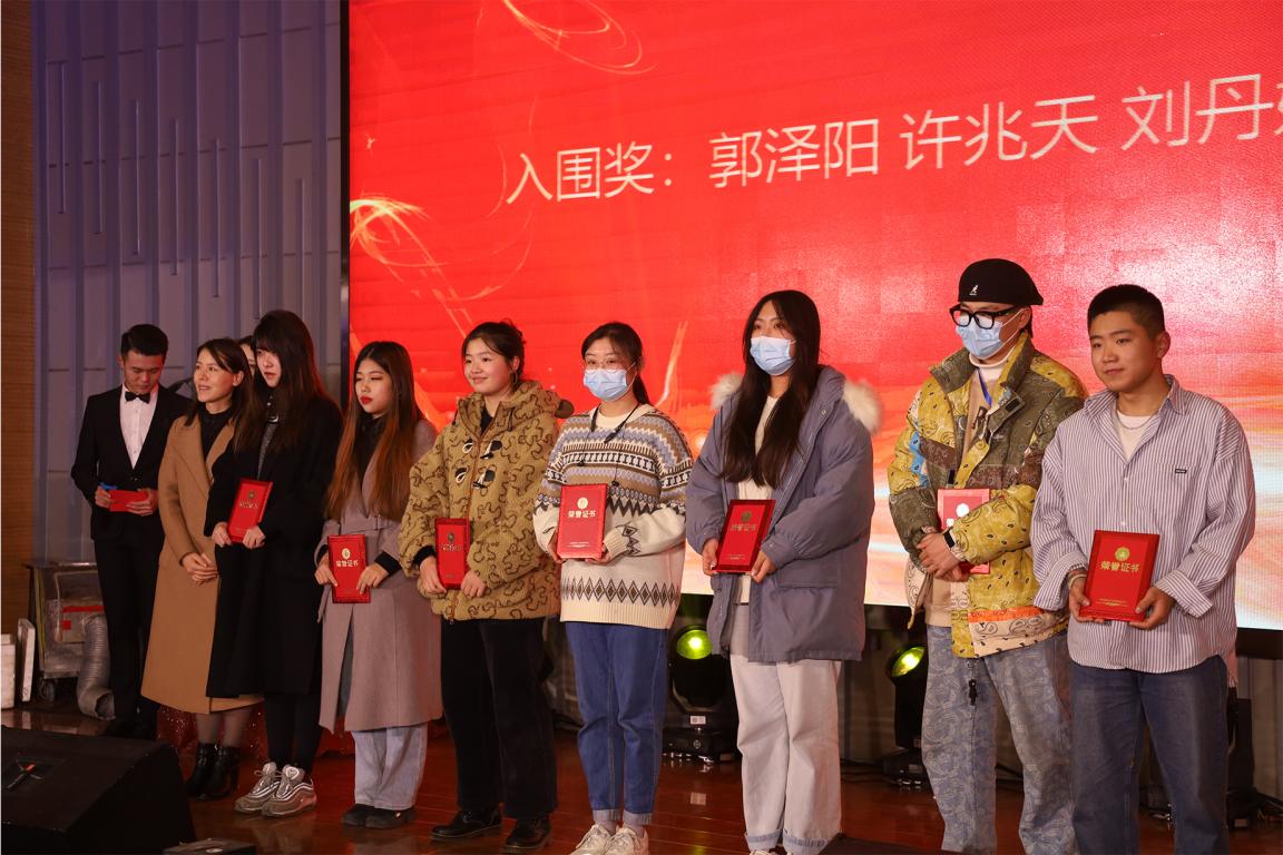 值此晚会良机,学院表彰了本年度创新课堂大赛与课程思政教学的先进个人。副校长赵国华为课堂创新大赛的6位获奖教师颁奖。学院领导也为积极参与建院十周年暨元旦晚会海报设计比赛的10名同学们颁奖。2020级表演1班热心帮助走失老人回家的五位同学:连一僮、王少豪、刘子杰、李浩泽、郝雪,被学院授予“乐于助人青年楷模”称号。