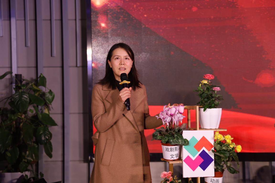 晚会最后,由南华院长发言,她说到:“十年今日,斐然成章。感谢同学们用深情的辞章见证学院的发展,感谢师生用最靓的歌、最美的舞书写学院的历史。过去十年师生们辛勤耕耘,令学院在立德树人、师资建设、人才培养、专业建设、学科发展、社会服务、文化交流等方面取得质的飞跃。在艺术+语言的探索中,学院确立并践行的具有家国情怀、具有国际化艺术视野,熟悉艺术领域国际交流规则的复合型艺术人才培养目标,以及发展具有差异性核心竞争力的特色专业与学科探索,将在十四五期间继续深化。”她感慨台上这些小花架——学生们是上层青春绽放的花骨朵,而在最底层的泥土则是学校的老师与发展团队。老师们用自己的青春培养出优秀的艺院学子。南华院长以立德树人与德艺双馨再次勉励全院师生,并向曾经在学院工作过的老师、毕业生们再次致以深深的感谢,最后祝福学院薪火相传,再创辉煌!