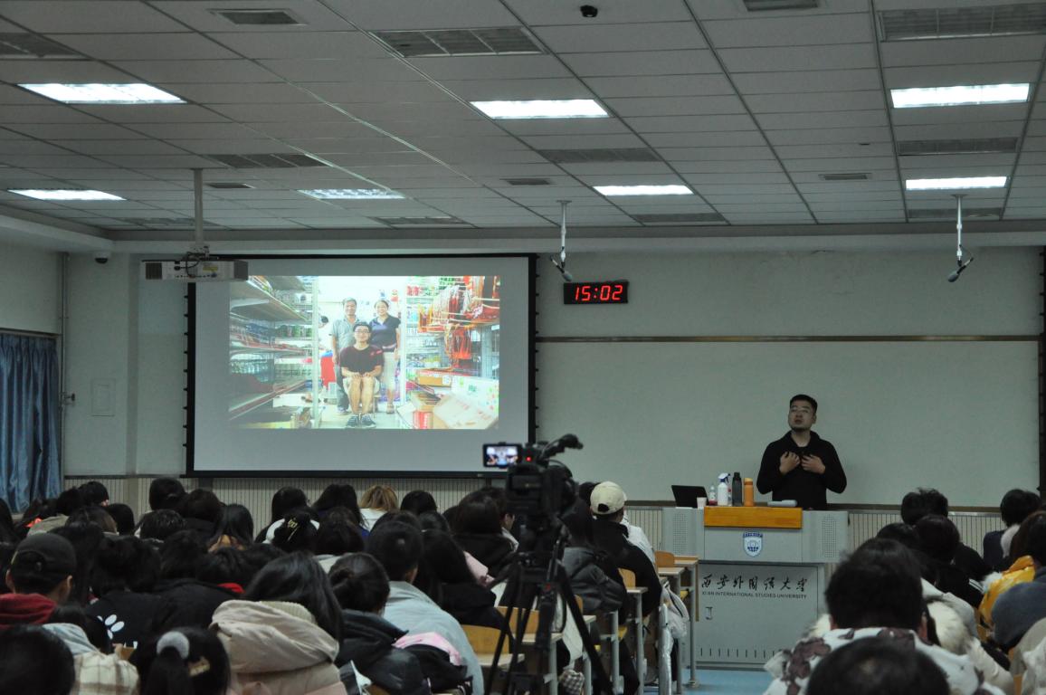 分享会上许凯诙谐幽默,将他大学期间做过些特立独行的事生动道来,在学校西门开蛋糕店、骑行壶口瀑布、“蹭”车去拉萨、与舍友们一起做过的行为艺术,向学弟妹们奉上一句切身心得:多看书、多走路、多见人。大学期间的感受,直接影响毕业后的择业。他坚持走入乡村与老人们交谈,并为他们拍摄生活照与视频,用镜头留住平凡市井中的脉脉温情。他和老人间的故事不断丰满着“和9999个陌生人打招呼”视频系列,在许凯这位“好后生”的感召下,越来越多的人加入这场关爱老人的行动,一起去改善农村老人的生活条件,将微光聚成一团火。