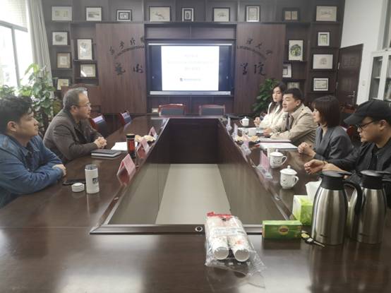 专业分布、教学师资情况进行了总体介绍。表演教研室主任陈乃嘉对表演专业近些年的实践教学、实习合作情况做出介绍。陕西宇晅影视文化传媒有限公司总经理武岳就公司概况及影片拍摄、项目筹备情况进行了详细的说明,并希望与学院在表演、后期制作、项目实践上有进一步深入的交流及协作,双方也就合作的相关具体事项交换了意见并进行了展望。邹满星副院长诚挚邀请来访公司作为嘉宾,参与学院“第三届'学院杯'影视、动画、游戏角色配音大赛”并给予指导。会后,双方在学院会议室进行了合影留念。
