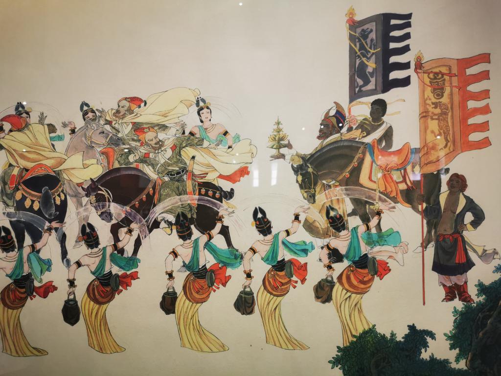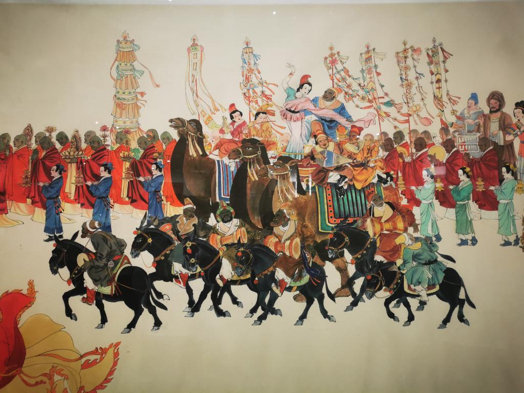 长达60米的国画巨制《大唐盛景图卷》用出色的笔墨功夫描绘了盛唐时期大唐西市的商业街景和人文风俗。1500余位唐代人物栩栩如生,将观者带回1000年前的大唐盛景中。画家马欣乐已受到意大利政府的邀请,《大唐盛景图卷》西安首展后,将在丝绸之路终点罗马继续展出。此次西安首展将持续至9月30日。