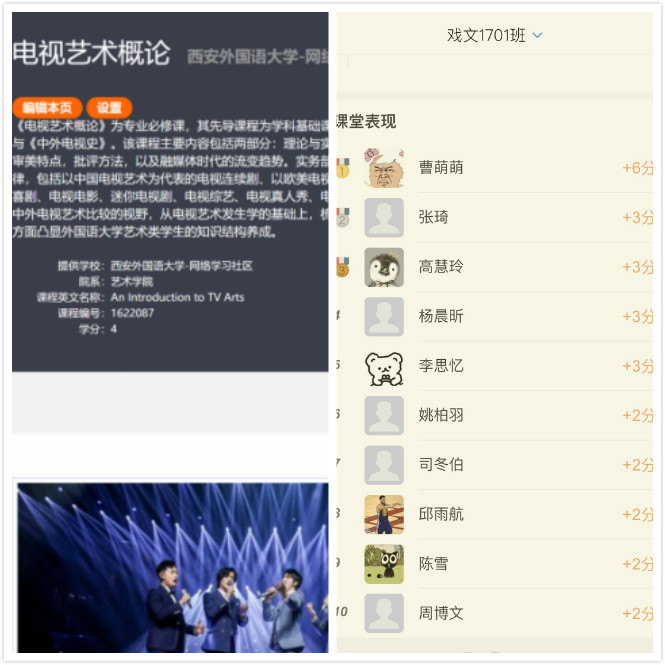 首先,确定《电视艺术概论》授课平台。以学校教学平台超星尔雅迅速建设线上翻转课堂,带领学生进入“虚拟教室”,掌握平台学习功能;以腾讯会议同步教学完成互动与答疑关键环节,引导、满足学生的学习需求与交流需求。