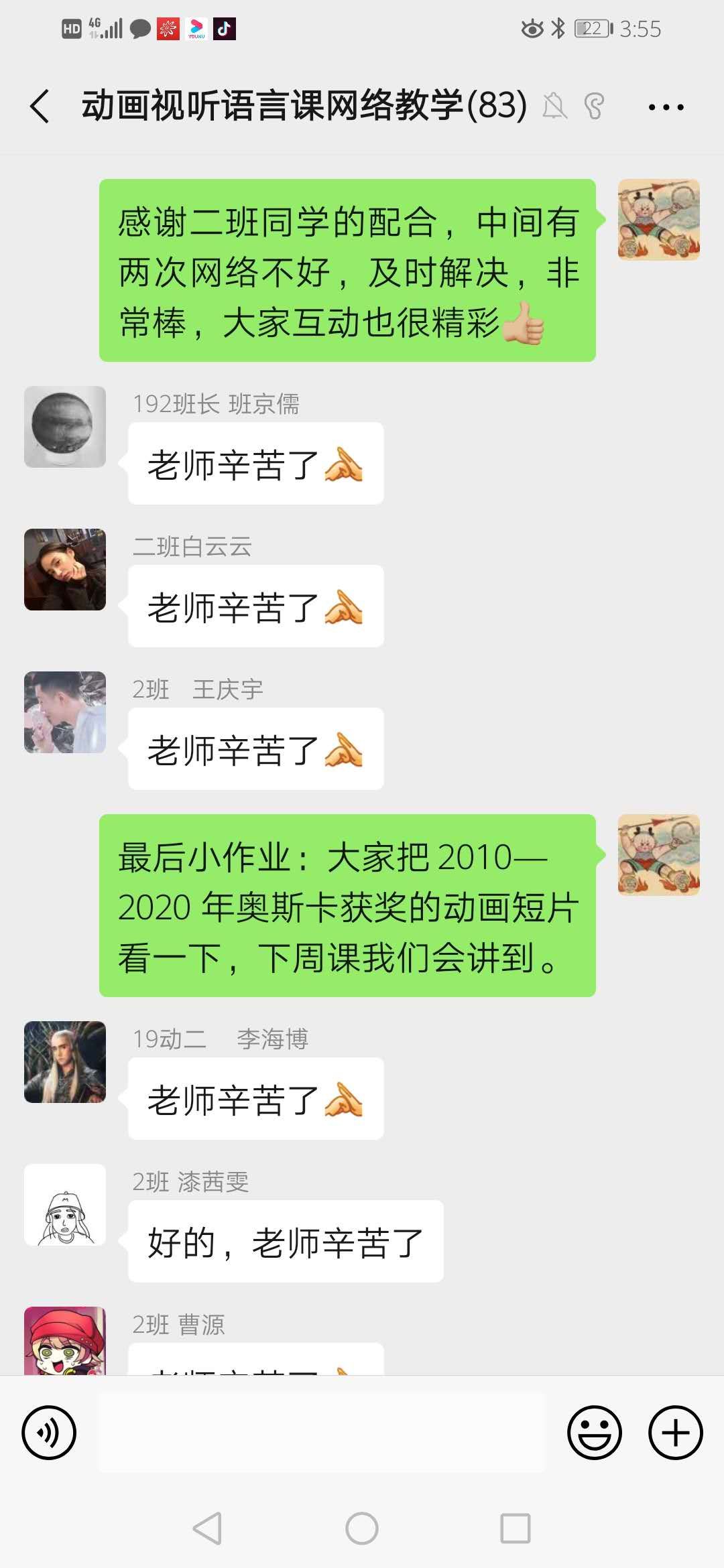 动画专业线上教学顺利开展,动画专业课程实践性强,主要应用校外平台。腾讯会议直播教学以及微信群辅导,部分老师选用了成熟的慕课。