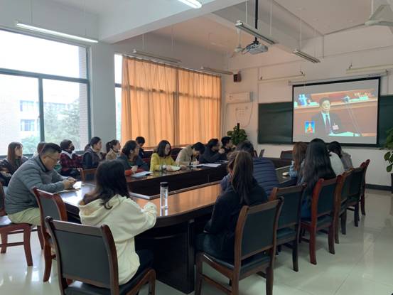 党委组织师生在学院会议室通过网络收听收看开幕式,学院党委理论学习中心组成员及部分学生党员全程观看直播实况。