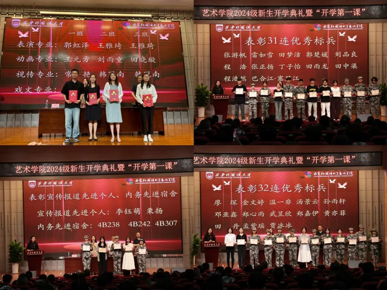 表彰环节,学院对在2024年新生军训中涌现出的优秀集体和个人进行了表彰,院领导为他们颁发荣誉证书。