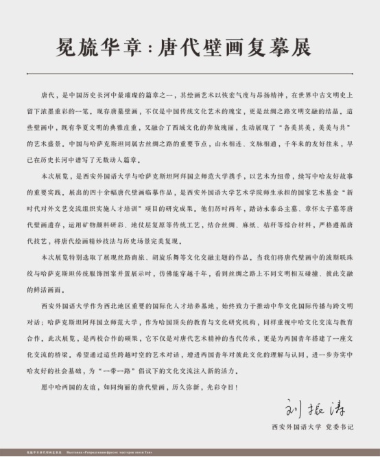 本次展览将持续至2025年年底。此次展览不仅是唐代艺术精神的现代表达,更是搭建起中哈两国青年文化交流的重要桥梁。期望通过这些跨越时空的艺术对话,增进两国青年的文化理解与认同,进一步筑牢中哈友好的社会根基,为“一带一路”倡议下的人文交流注入全新活力。