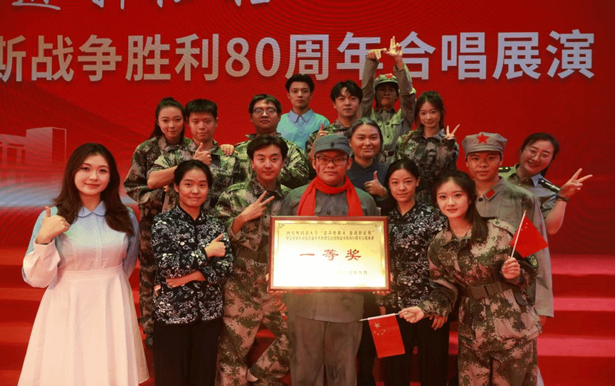 精彩演绎《新四军军歌》和《爱永在》两首歌曲,最终荣获合唱展演一等奖。