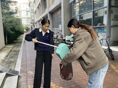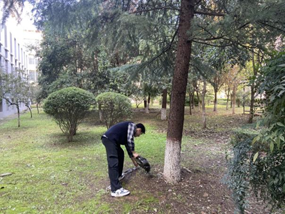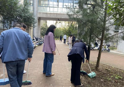 劳动开始后,大家用扫帚、簸箕、垃圾袋等工具,在指定区域有序逐片清扫。大家分工协作、默契配合:有的俯身弯腰,用夹子仔细捡拾绿化带中的烟头、零食包装袋;有的挥动扫帚,反复清扫堆积的落叶与碎石。活动中,师生们充分发挥校园主人翁精神,从“心”开始,从“细”着手,感受“动”的教育。总务部专业人员进行了巡回指导,讲解工具安全使用、垃圾分类知识、植物养护常识,解决技术问题。