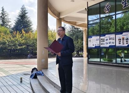 党委组织80余名师生党员及入党积极分子,在教学楼D区周边,联合开展“党建引领促劳育·党员先锋美校园”活动。活动由总务部集采中心主任孙子辰主持。