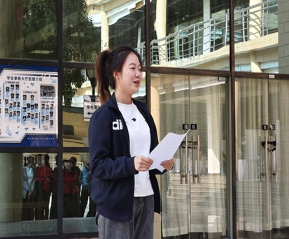学生魏馨甜代表全体参与活动的学生郑重承诺,将以饱满热情投入劳动任务,在实践中锤炼党性、加强协作,深入了解学校的一草一木,持续学习校园环保节能知识,不断提升自我管理服务意识,倡导全体同学爱校如家,为整洁、美丽、温馨的校园尽自己的一份力量。