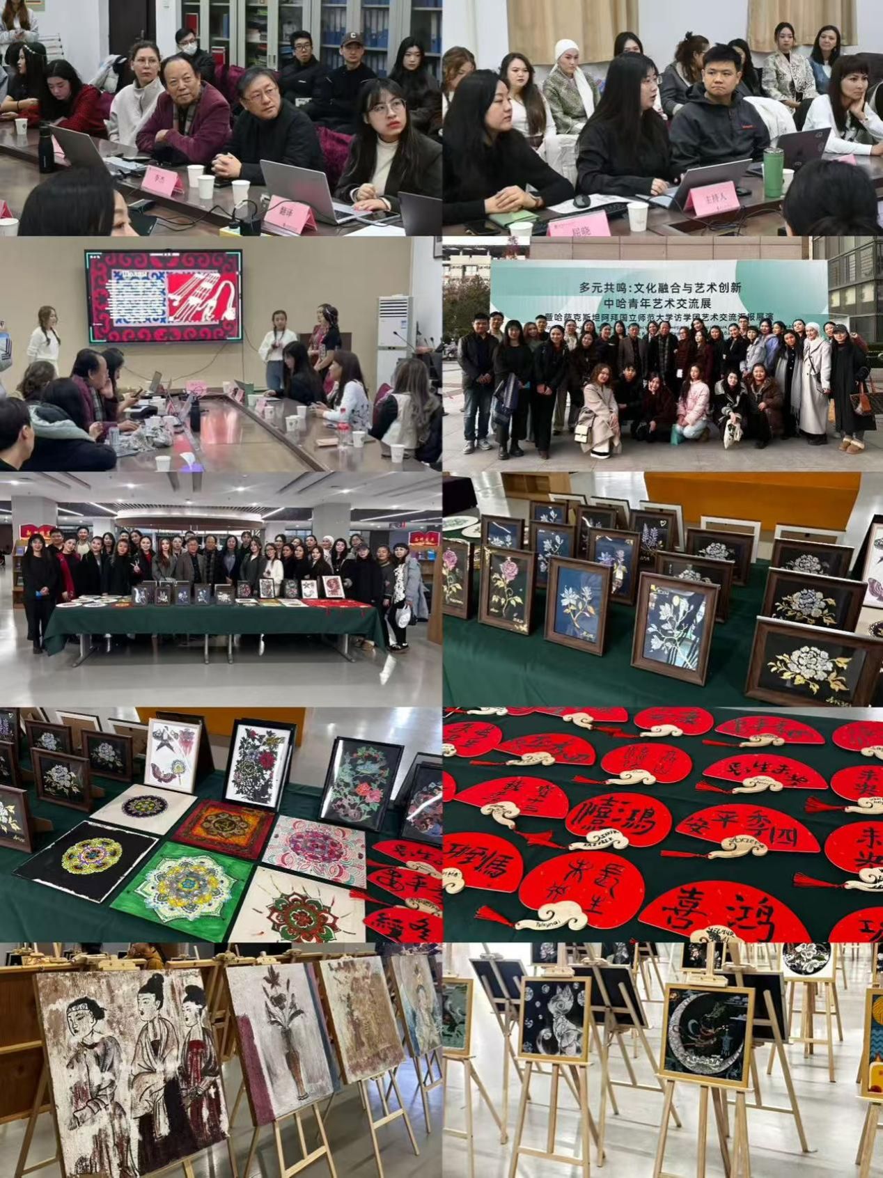 本次活动以“多元共鸣:文化融合与艺术创新”为主题,构建“研、学、展、演”四位一体的交流体系。中哈青年学者围绕“艺术设计创新”“数智时代美术发展”等议题展开深入研讨;在艺术工坊中,两国青年共同体验戏曲身段、书法创作、非遗螺钿镶嵌等技艺,于指尖流转的技艺中凝聚超越语言的文化默契。