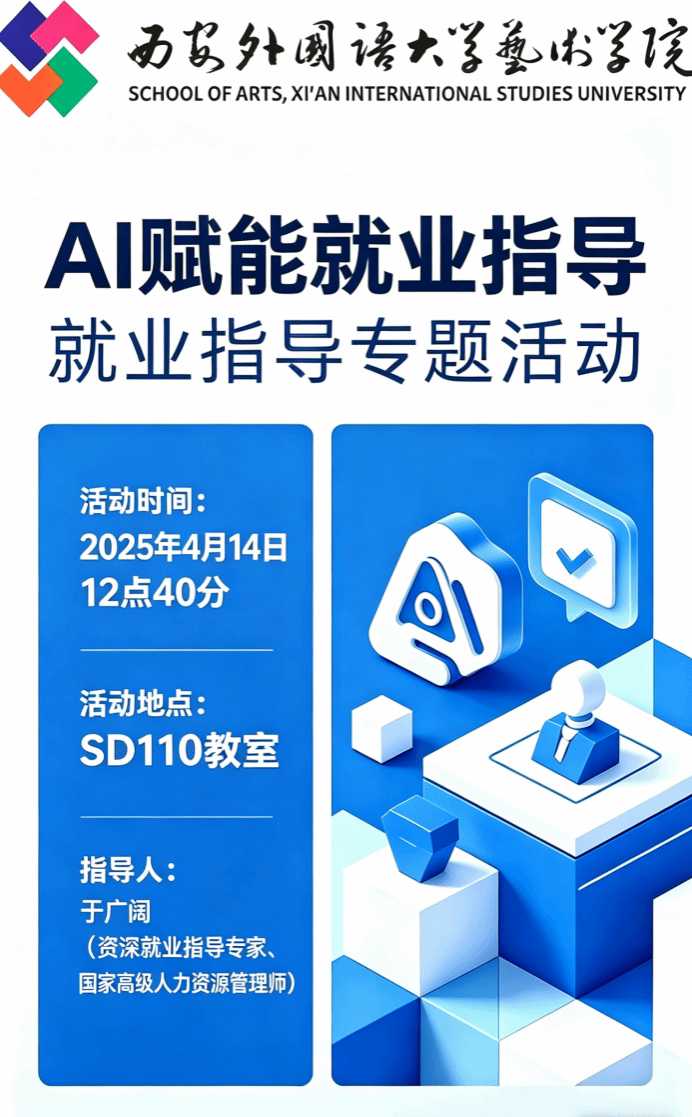 于4月14日下午在SD110举办“AI赋能就业指导”主题活动,本次活动特邀西安市人才中心就业指导讲师、国家高级人力资源管理师于广阔担任主讲,聚焦AI技术在学业与就业中的实战应用。莲湖区人社局人才交流中心就业指导部部长刘翔、开云体育
