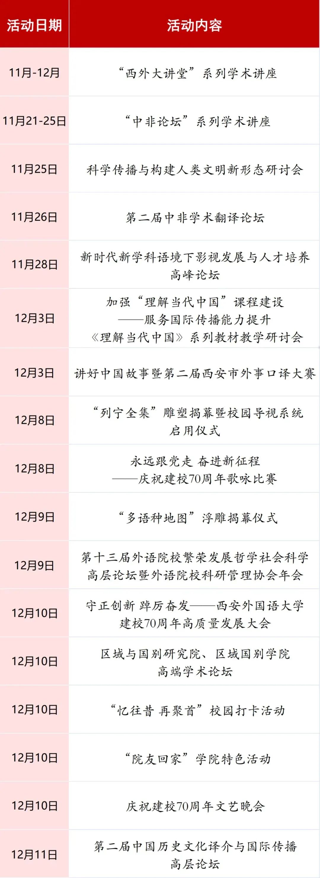 校庆活动安排(部分)