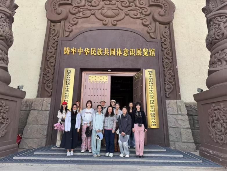 抵达鄂尔多斯后,同学们在常艳老师的带领下陆续参观了鄂尔多斯博物院、青铜器博物馆、鄂尔多斯文化产业园、成吉思汗陵以及铸牢中华民族共同体意识展览馆。踏入博物馆,仿佛开启了一场跨越时空的对话,尤其是博物馆中青铜动物配饰淋漓尽致地展现了游牧文明的动态张力与独特的材质叙事逻辑,为艺术创作打开了灵感的宝库。