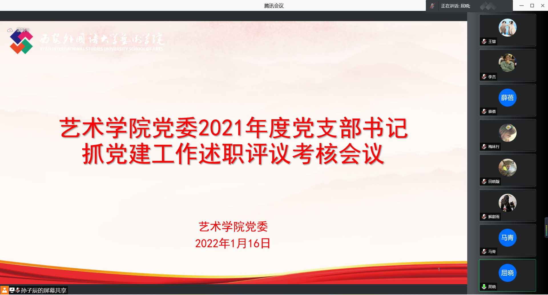 党委线上召开2021年度党支部书记抓党建工作述职评议会。学院班子成员、党委委员、党支部书记、师生代表共36人参加会议。会议由学院党委副书记屈晓主持。