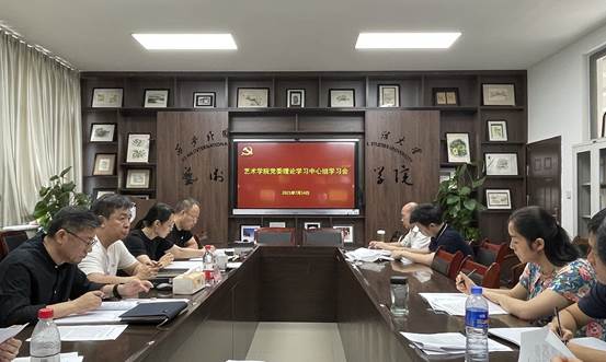 梅林竹领学习近平总书记《在庆祝中国共产党成立一百周年大会上的讲话》节选,专题学习“九个必须”中有关部分。她从树立马克思主义文艺观、贯彻党的文艺方针政策、贯彻党的教育方针三部分内容谈了心得体会;李杰领学了中央教育工作领导小组《关于深入学习宣传贯彻党的教育方针的通知》,结合近期研究的中国新文艺思潮与中国共产党的发展进程发言;邹满星就教学和管理工作,谈如何为党和国家做好教育工作;张勤宝谈如何在教学环节中对青年大学生的爱党、爱国、爱校的思想引领;李金明以文化自信和讲好中国故事的角度谈在授课过程中对中华传统文化的讲解,用专业的画笔描绘身边的优秀传统文化与祖国的大好河山。