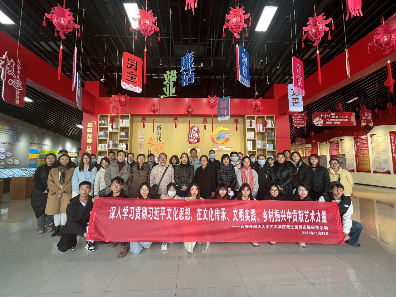为进一步深入学习贯彻习近平文化思想,引导全院师生在文化传承、文明实践、乡村振兴中贡献艺术力量,11月29日下午,开云体育 组织师生代表赴蓝田县开展实践研学活动。蓝田县委常委、县委组织部部长展云飞、部务委员韩小娟、县人才办有关负责人陪同参观考察。