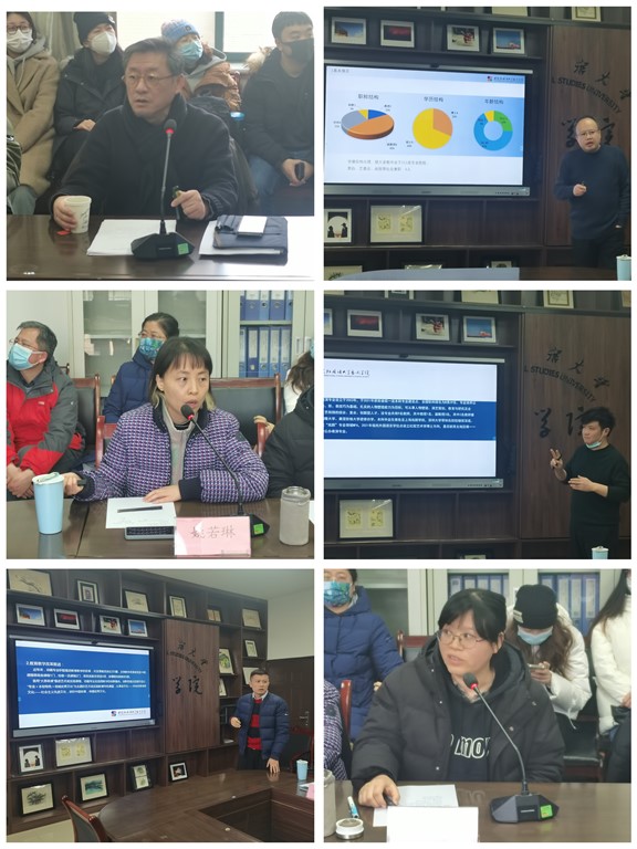 美育教研室主任姚若琳从建设情况、存在问题及下一步建设计划等方面作了美育工作汇报。视觉传达设计专业带头人邹满星、表演专业带头人陈乃嘉、动画专业带头人李金明、戏剧影视文学专业带头人魏英分别从专业基本情况、建设举措和成效、存在的主要问题、下一步专业优化调整方向及举措等方面作了专业优化调整工作汇报。