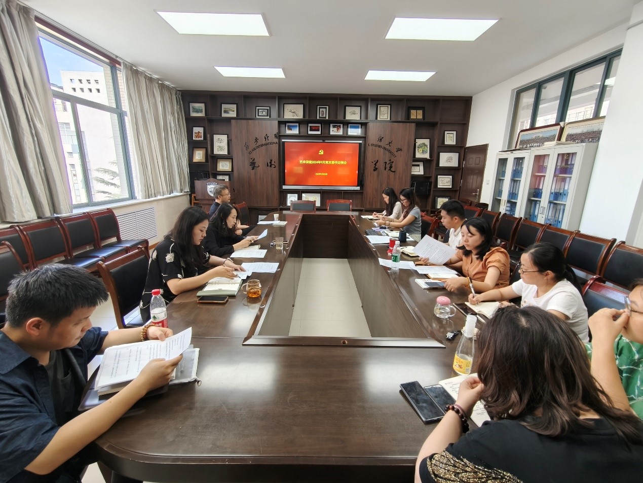 会议第一阶段,屈晓领学了《中国共产党支部工作条例(试行)》第4章-第6章;党委秘书孙子辰汇报了学院分党校课程和“行走的文艺党课”安排,学工联络员刘青清汇报了“一站式”学生社区建设、党员宿舍情况;各党支部书记汇报了9月支部“三会一课”、主题党日活动情况;学生党建工作中心部门负责人汇报了分管部门本月活动开展情况。