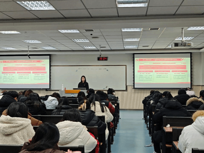 宣讲会上,张力华同学紧扣党的二十届四中全会主题,系统梳理了全会的重要成果与重大意义,深入阐释了全会明确的“六个原则”与“七大目标”,并重点围绕如何推动全会精神落地见效分享了学习体会。她指出,党的二十届四中全会吹响了向基本实现社会主义现代化目标奋进的号角,“十五五”规划为国家发展描绘了宏伟蓝图。她号召同学们紧密团结在以习近平同志为核心的党中央周围,认真学习贯彻全会精神,准确把握国家发展导向,将个人成长融入强国建设、民族复兴的伟大征程,在实践中砥砺担当,书写无愧于时代的青春篇章。