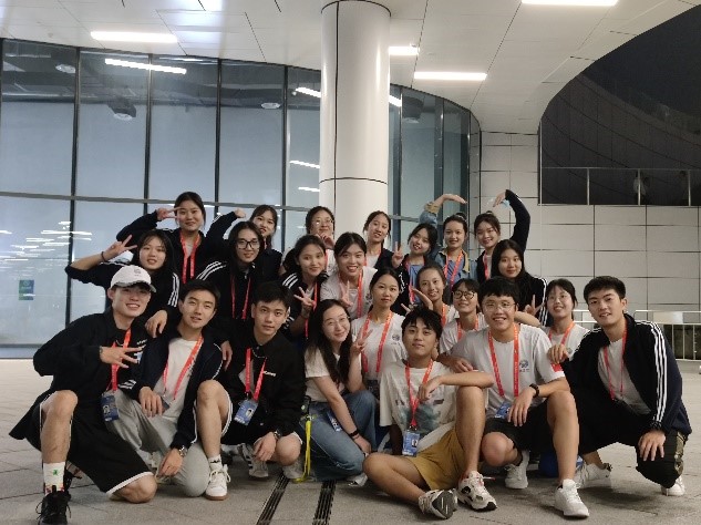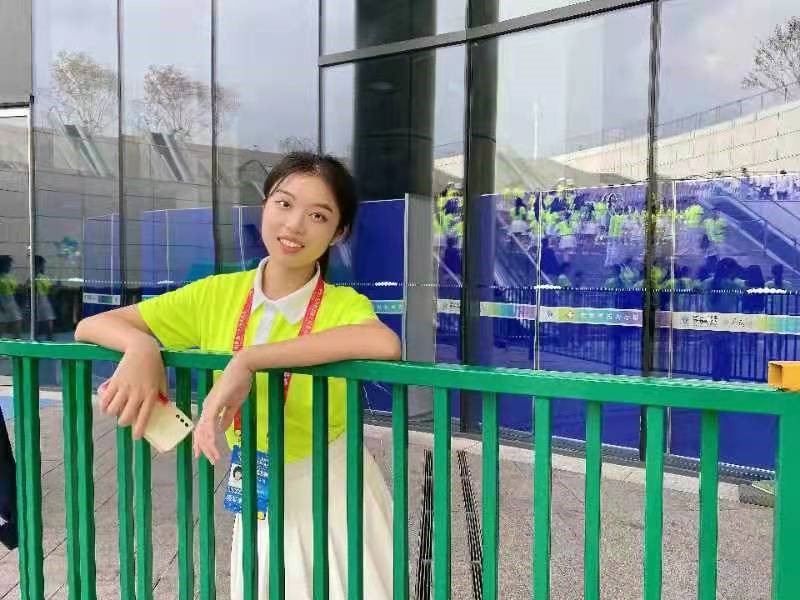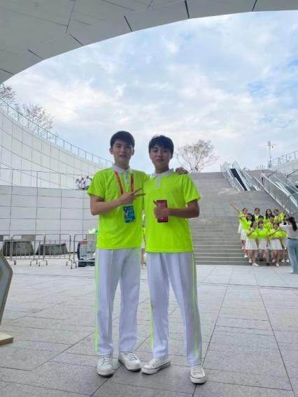 在训练中期的时候,我们进入了奥体中心。在第一次进入奥体中心的时候,我产生了一种“没有那么神秘,但依旧很奇特”的感觉。仿佛它一直在召唤我、吸引我,仿佛命中注定我就该来到这个地方。后来,我们就逐渐开始了颠倒的作息,我每天去训练时都是无精打采的,但是我和同学们都会积极调整,在训练的过程中将状态提升到最好。在休息过程中我们也会有一些娱乐活动,比如说唱歌跳舞,但给我印象最深刻的一次就是我们的辅导员老师过生日的那天。在没有办法也没有条件的前提下,我们只能在返程的大巴车上给老师过生日,等大家一起唱出生日快乐歌的时候,那时我的感觉至今没有办法用言语来形容,仿佛训练中那些苦恼烦心事都在那一刻得到了释怀。然后就是同学们挨个上前表演唱歌跳舞,我发现身边的人都是这么的优秀……于是从那一刻起,我便更加认定,我做的这件事是有意义的。不仅这件事它本身具有的意义,对我的人生、我的经历,以及对我认识的人来说它都意义非凡。我觉得每一天最开心的时候,就是大家一起在车上说唱玩闹的时候。可能大家每一天紧绷的弦都在那一刻得到了释放,在那个时候大家都是放松的状态。
