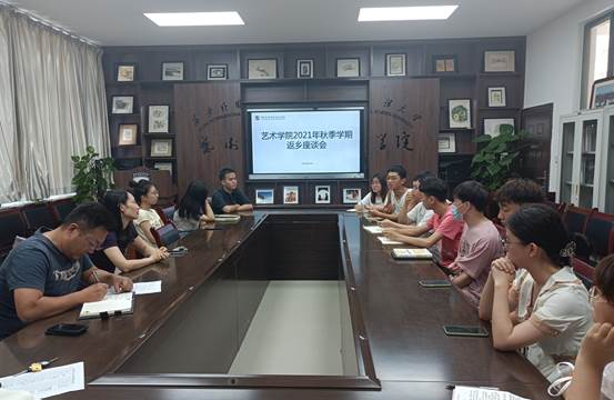 在会议室召开“2021年度秋季学期学生返乡座谈会”。学院党委书记梅林竹、学工办主任程成、辅导员及研究生、本科生学生代表参加座谈。会议由学工办主任程成主持。