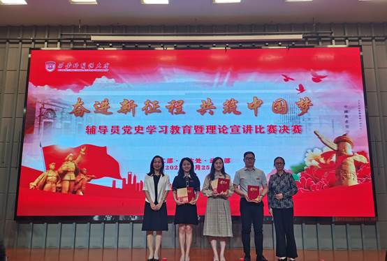 2021年5月25日上午,我校学工部举办的“奋进新征程,共筑中国梦”西安外国语大学辅导员理论宣讲比赛在JA111报告厅举行,校党委副书记马洁,宣传部、组织部、统战部等部门负责人出席了本次大赛,各学院党委书记、副书记、学工办主任以及全体辅导员和部分学生代表到场观摩。