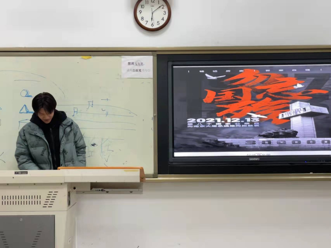 2021级部分班级组织开展了"国家公祭日:铭记历史,缅怀先烈"主题班会。