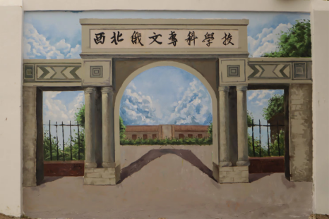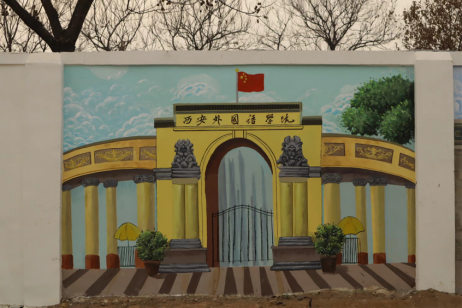 日月梭七秩,锦绣绘新篇。校庆主题墙绘的画面布局,以学校标志性建筑场景的转换来展现西安外国语大学的发展历程。从西北俄文专科学校到西安外国语大学,昭示着我校七十年间,薪火相承,弦歌不辍,向着建成更高水平的外国语大学而不断奋进的精神。