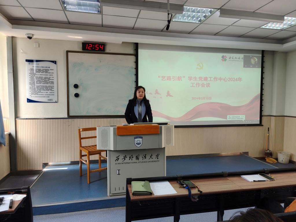 “艺路引航”学生党建工作中心本学期第一次工作会议在JE509召开。学院党委书记梅林竹、副书记屈晓、党建工作中心各部门负责人、指导老师代表及全体学生党员、入党积极分子参加会议。会议由屈晓主持。
