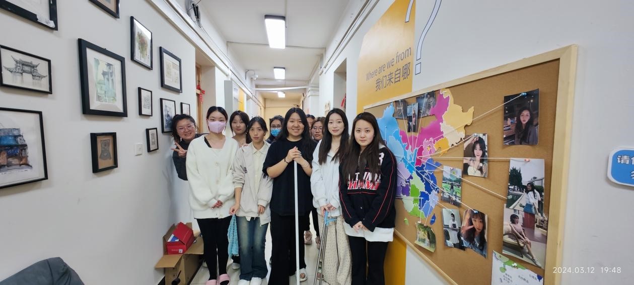 4B公寓文化区进行了维护和清理,自己动手美化公寓空间。同学们手持扫帚、抹布等工具,细致入微地清理文化区的每一个角落,装饰墙面、画框、宣传标语经过同学们的清洁焕然一新,走廊中的绿植在细心打理下焕发出勃勃生机。在劳动时,李婵和同学们谈心聊天,回顾了两年时光中大家的成长历程;同学们也纷纷表示文化区建设初期大家一起布置墙面装饰时的画面还历历在目,能够在美化后的公寓区生活学习是一件幸福的事情。