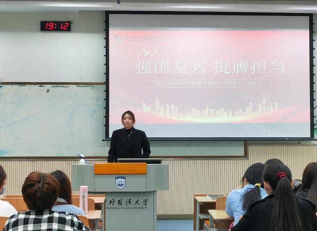 研究生兼职辅导员、第14届学生会主席团成员、第24届研究生支教团成员连梦源作为主讲人为学生会全体干部进行培训。