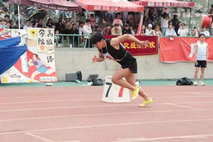 奋勇冲刺的运动员在拼搏中触摸青春的音符。