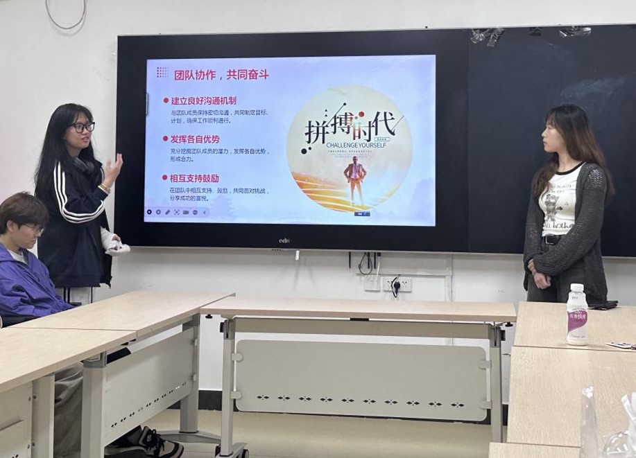 班长王怡璇以个人成长经历为引,真诚地分享了自己生活中的感悟:在这个充满机遇与挑战的时代,当代大学生也应该有强烈的社会责任感和使命感,努力学习、团结奋斗、拼搏创新,成为有理想、有担当的青年。团支书张奕婷讲解了作为当代大学生对未来应该有怎样的展望与期许。学生代表张为泽结合自身目前情况,从学习小目标畅谈到人生大规划。闫煜彤、谭欣怡两位同学说到有关于作为中国新时代的大学生应该具备的爱国精神、求知精神、终身学习精神、创新精神等内容,给予同学们很大的启发。张语诗、熊欣分别谈到在认真学好专业知识的同时要多参加社会实践和志愿活动,彰显自身价值,努力为学校、社会做贡献。最后班主任雷诺阿老师总结发言,建议同学们应该树立目标和梦想意识,发掘自身优势,争做有为青年。