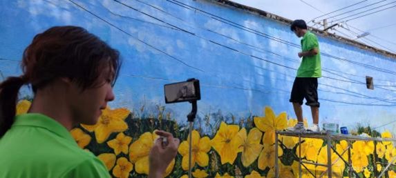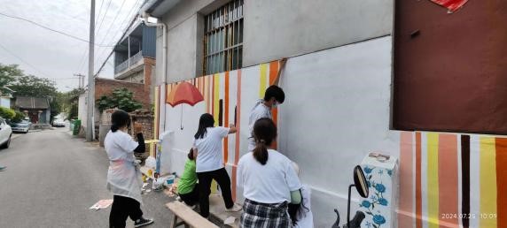 专业特色,接续前期艺术助农成果,实践团深入黄良街道,围绕农业花卉种植、轻工业葛村豆腐、旅游业黄良艺术街区展开产业调研,在社区开展美育支教弘扬传统文化艺术,并在艺术街区完成十余面墙的美化墙绘,以青春执笔,用艺术挥毫,助力乡村振兴。